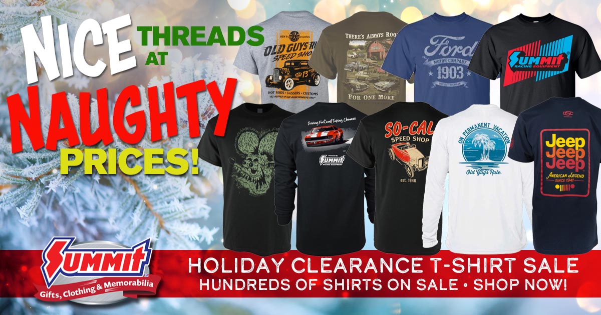 Hundreds of incredible classic car, hot rod and performance industry T-shirts and more from Summit Racing Equipment, plus $5 off your $100 mobile app purchase.